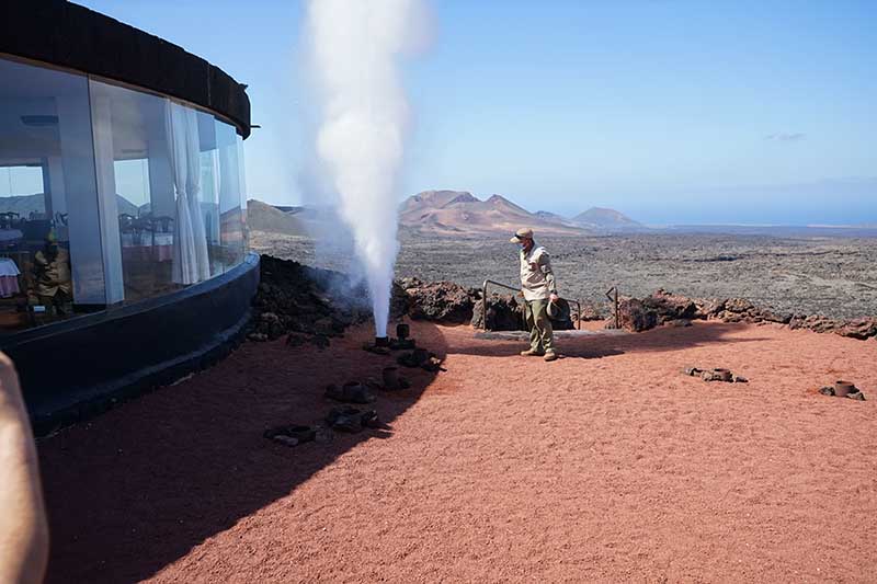 Although the volcanic activity has stopped in Lanzarote, researchers are still studying the micro earthquakes that happen on the surface of the Earth’s crust, of interest for scientists but harmless for the island people. On the contrary, thermic anomalies are amusing for the visitors that watch a bit of water introduced in a hole the ground becoming a geyser of boiling steam in seconds, due to a magmatic camera situated three kilometres deep down that reaches from 100 to 200 degrees centigrades on the surface.
